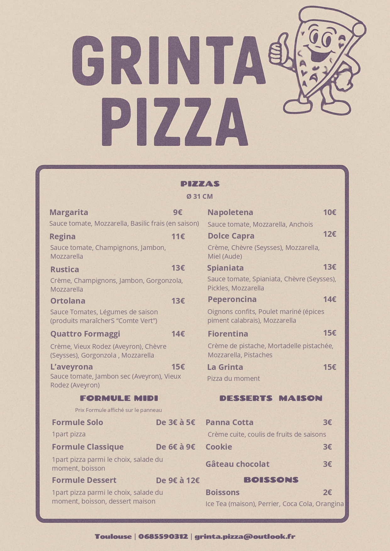 Nous avons le plaisir de vous informer de l’arrivée d’un nouveau food-truck : Grinta Pizza.